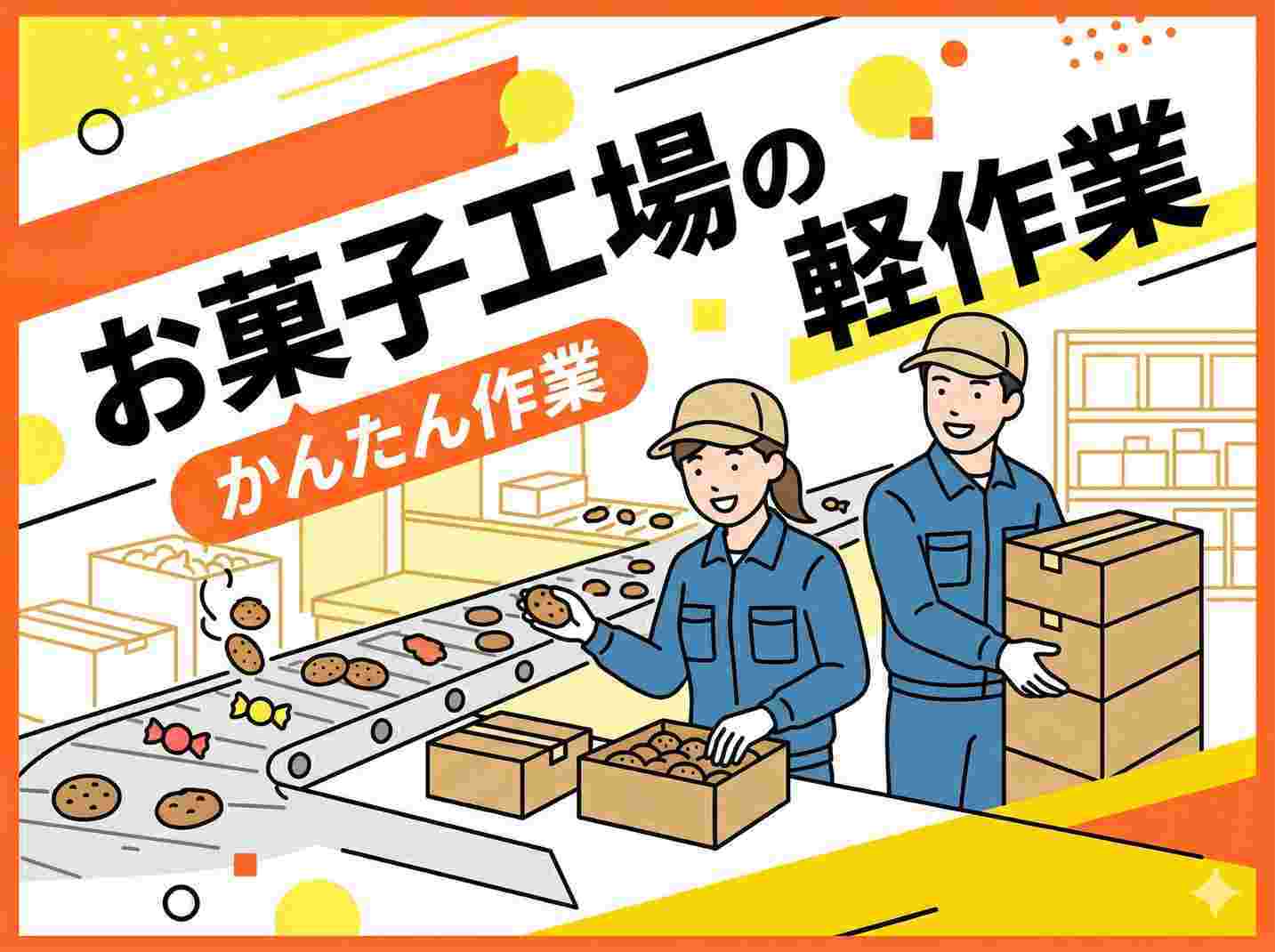 お菓子工場内で製品づくりをサポートする軽作業を担当します。主に製造補助・検品・仕分け・梱包などの工程を行う仕事です。すべてマニュアルや指示に沿って進めるため、未経験からでも始めやすい内容となっています。
