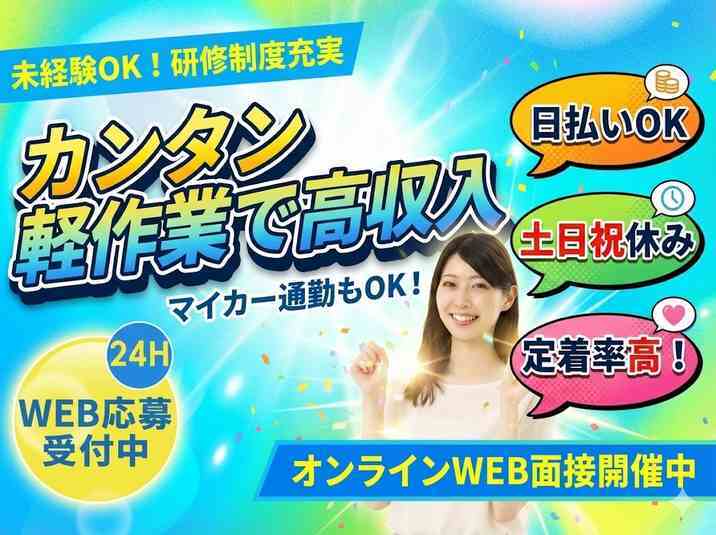 工場や倉庫内で製品づくりや出荷準備をサポートする軽作業を担当します。主に組立・検品・仕分け・梱包などの工程を行う仕事で、すべてマニュアルや指示に沿って進めるため、未経験からでも始めやすい内容となっています。